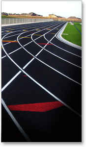 Omni Latex Tracks Omni gives you the world-class surface you always wanted, but thought you could never afford! Utilizing methods perfected through years of experience, Omni is applied by hand to produce a surface of consistent, appealing texture. Omni is available in a wide range of colors as well as our standard black. We can even custom mix to match your school's colors. Whichever color you choose, you can depend on it lasting for years. Laboratory tests have proven Omni's outstanding resistance to fading! Breathability…The life of your track Omni offers a wide variety of systems Omni "breathes." It lets moisture, trapped in the sub-base of the track, work its way up through the base and escape in the form of vapor. If a surface does not breathe, pressures build up, causing delamination from the asphalt base. This can result in unsightly bumps and waves. |